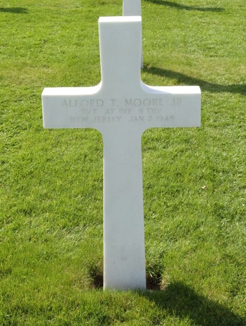 Pvt Alford T. Moore Jr. was a mechanic and repairman before he enlisted at Fort Dix, New Jersey on 1 April 1944.Source of information: Peter Schouteten, Carla Mans, www.abmc.gov, www.wwiimemorial.com, www.archives.gov - WWII Enlistment Record, www.ancestry.com - Headstone and Interment Record / U.S. WWII Draft Cards Young Men, http://9thinfantrydivision.net