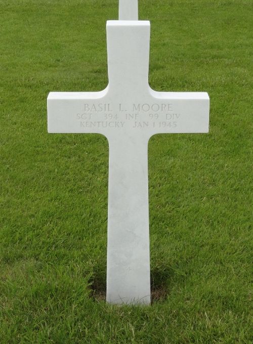 Sgt Basil L. Moore worked on a farm before he enlisted in Evansville, Indiana on 3 December 1942.Source of information: Peter Schouteten, www.abmc.gov, www.wwiimemorial.com, www.archives.gov - WWII Enlistment Record, www.ancestry.com - U.S., Headstone and Interment Records for U.S. Military Cemeteries on Foreign Soil / Smith Stalls Vincent Family Tree