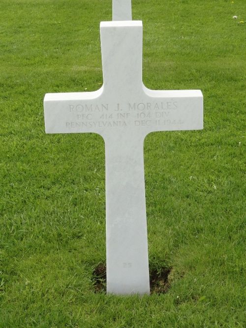 Pfc Roman J. Morales enlisted in Pittsburgh, Pennsylvania on 24 November 1943.Source of information: Raf Dyckmans, Carla Mans, www.abmc.gov, www.wwiimemorial.com, www.archives.gov - WWII Enlistment Record, www.ancestry.com - 1940 Census / Headstone and Interment Record