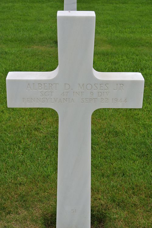 Sgt Albert D. Moses Jr. was first buried at the Temporary American Military Cemetery of Fosse, Belgium.
