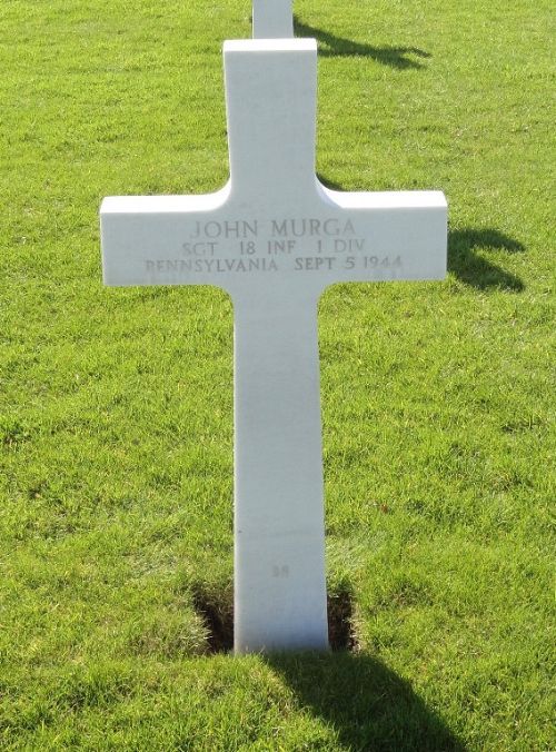 Sgt John Murga was a plumber before he enlisted in New Cumberland, Pennsylvania on 27 January 1942. He was sent overseas in August 1942 and first participated in the campaign in North Africa and Sicily. On 10 november 1942 he was reported missing in action. It was learned from his comrades that he was behind enemy lines. A few days later, he made it back to the American lines. He also participated in the D-Day landing in Normandy.His father was born in the Austrian-Hungarian Monarchy.