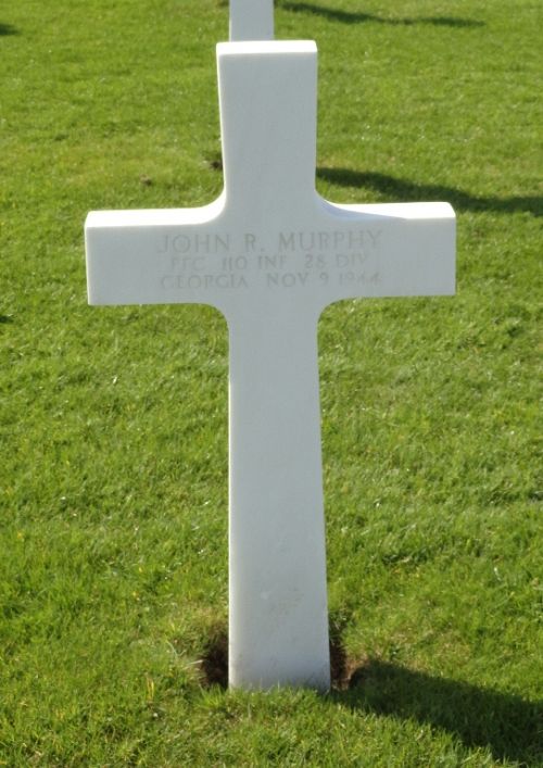 Pfc John R. Murphy enlisted at Fort McPherson, Atlanta, Georgia on 6 January 1944.Source of information: André Koch, Carla Mans, www.abmc.gov, www.wwiimemorial.com, www.archives.gov – WWII Enlistment Record, www.ancestry.com - 1920/1930 Census / Headstone and Interment Record / U.S. WWII Draft Cards Young Men, http://www.historynet.com/the-hurtgen-forest-1944-the-worst-place-of-any.htm,