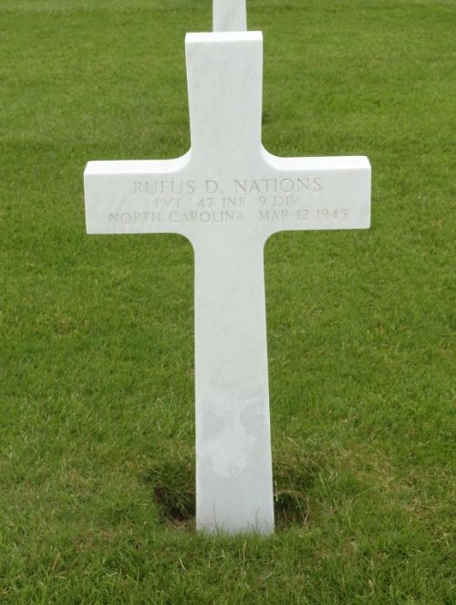 Pvt Rufus D. Nations worked on a farm.He enlisted at Fort Bragg, North Carolina, on 10 April 1944 and received his training at Camp Wheeler, Georgia. He was sent overseas in September of the same year.