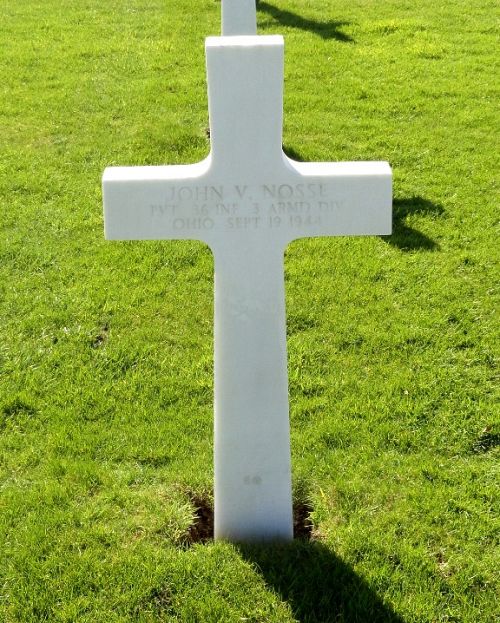 Pvt John V. Nosse was a driver before he enlisted in Cleveland, Ohio on 8 December 1943.Source of information: Peter Schouteten, www.abmc.gov, www.wwiimemorial.com, www.archives.gov – WWII Enlistment Record, www.ancestry.com - U.S., Headstone and Interment Records for U.S. Military Cemeteries on Foreign Soil / Carodine Family Tree / Cuyahoga County, Ohio, Marriage Records and Indexes