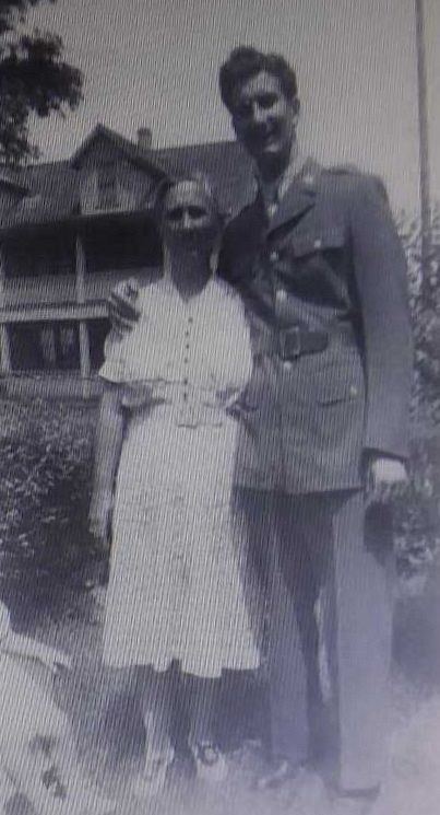 S/Sgt John J. Noto enlisted in Buffalo, New York on 20 October 1942."Silver Creek, Aug. 17 - Mr. and Mrs. James Noto of Hickory St., have received word from the government that their son, Pfc. John J. Noto, 22 is making satisfactory recovery in a general hospital in England from injuries sustained July 12 while fighting in France. The parents were informed, the Purple Heart has been presented to their son. John Noto entered the service Nov. 3, 1942, and has been overseas five months. Injuries are to his left shoulder and leg"