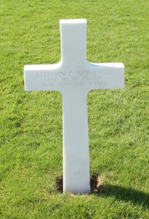 Pfc Stephen L. Nowenski enlisted in Buffalo, New York on 27 November 1942.He was first buried at the Temporary American Military Cemetery of Fosse, Belgium.