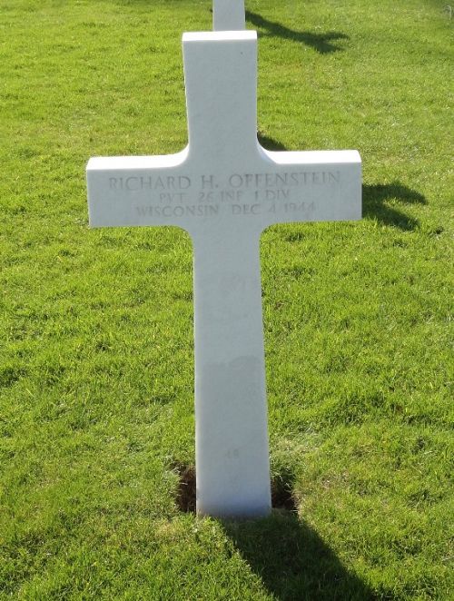 Pvt Richard H. Offenstein enlisted on 17 December 1943. He was killed in action after being overseas for one nineteen days.His brother, William F. Offenstein, is buried next to him.