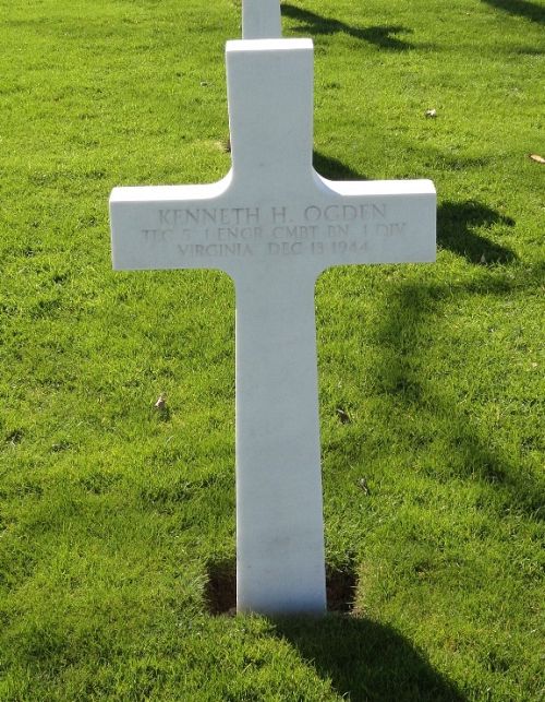 T/5 Kenneth H. Ogden was first buried at Temporary American Military Cemetery Henri-Chapelle, Block II, Row 10, Grave 184.
