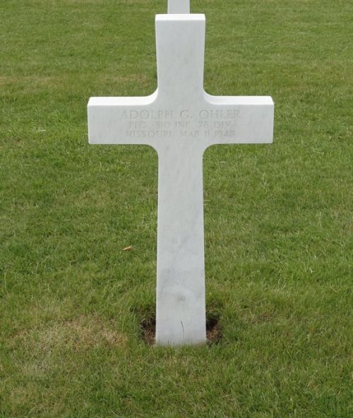Pfc Adolph G. Ohler was a mechanic and repairman of motor vehicles before he enlisted at Jefferson Barracks, Missouri on 23 March 1944.Source of information: Peter Schouteten, Carla Mans, www.abmc.gov, www.wwiimemorial.com, www.archives.gov - WWII Enlistment Record, www.ancestry.com - Headstone and Interment Record / 1920/1940 Census, www.findagrave.com - James L. Cooper / Richard Blunk, www.newspapers.com - St. Louis Post-Dispatch