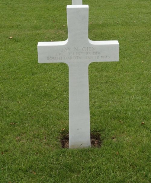 Pvt Jay N. Oien graduated from Sisseton High School in 1943. He worked on the family farm.He enlisted at Fort Snelling, Minnesota on 22 April 1944.