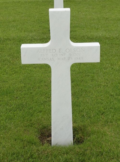 Pvt Alfred E. Olson graduated from Alma High School in 1937.He enlisted in Fort Leavenworth, Kansas on 12 October 1944.