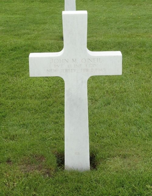 Pvt John M. O'Neil Jr. enlisted at Fort Dix, New Jersey on 1 April 1944.He attended high school for 2 years and was a chauffeur before he enlisted.