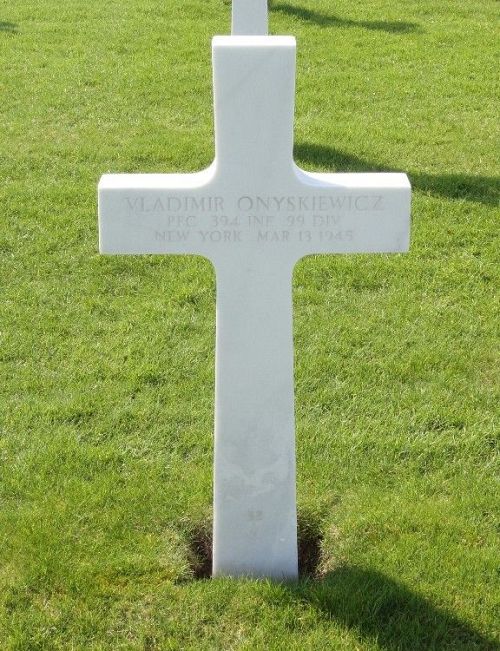 Pfc Vladimir Onyskiewicz enlisted in New York City, New York on 18 February 1943.Source of information: Peter Schouteten, Carla Mans, www.abmc.gov, www.wwiimemorial.com, www.archives.gov – WWII Enlistment Record, www.ancestry.com - Headstone and Interment Record / U.S. WWII Draft Cards Young Men, www.history.army.mil – Combat Chronicle