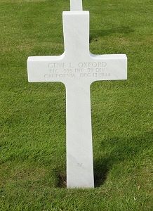 Pfc Gene L. Oxford graduated from Taft Union High School 1941, where he played football and attended Barbara State College. He was employed at the Standard Oil Company before he enlisted on 20 March 1942..He was killed by a German land mine explosion while he was on a combat patrol near Höfen, Germany.