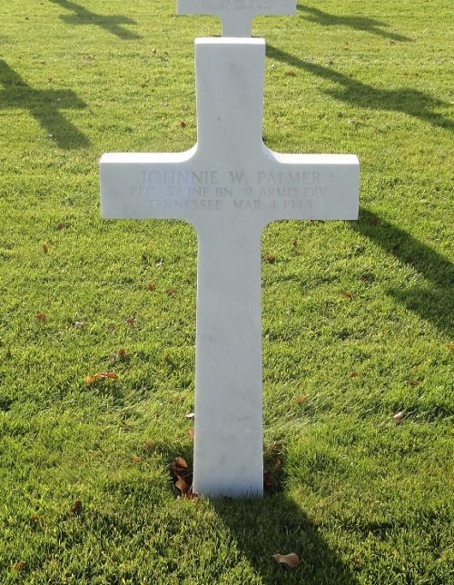 Pfc Johnnie W. Palmer was a driver before he enlisted at Camp Forrest, Tennessee on 20 April 1943.Source of information: Peter Schouteten, Carla Mans, www.abmc.gov, www.wwiimemorial.com, www.archives.gov – WWII Enlistment Record, www.ancestry.com - Headstone and Interment Record / U.S. WWII Draft Cards Young Men / Jones Family Tree / 1930 Census