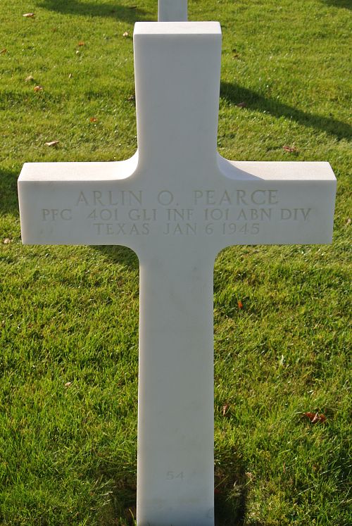 Pfc Arlin O. Pearce enlisted on 3 March 1943 and was sent overseas on 7 September 1943.