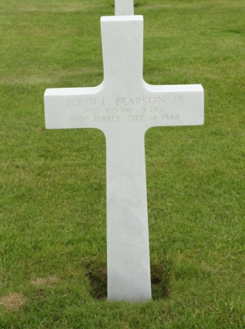 Pfc John L. Pearson Jr. was an insurance salesmand before he enlisted at Fort Dix, New Jersey on 27 March 1944.Source of information: Peter Schouteten, Carla Mans, www.abmc.gov, www.wwiimemorial.com, www.archives.gov - WWII Enlistment Record, www.ancestry.com - Headstone and Interment Record / U.S. WWII Draft Cards Young Men / 1930 Census, http://9thinfantrydivision.net