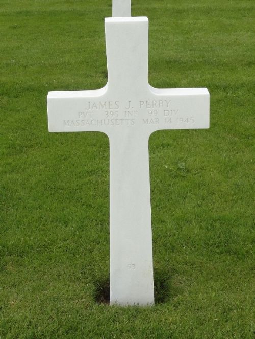 Pvt James J. Perry worked in a textile factory before he enlisted at Fort Devens, Massachusetts on 10 June 1944.Source of information: Peter Schouteten, Carla Mans, www.abmc.gov, www.wwiimemorial.com, www.archives.gov – WWII Enlistment Record, www.ancestry.com - Headstone and Interment Record / U.S. WWII Draft Cards Young Men