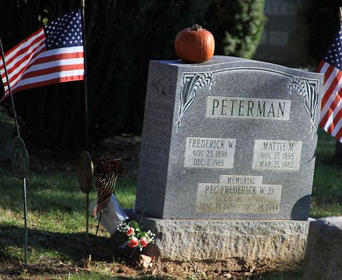 Pfc Peterman is remembered on the gravestone of his parents at the Lawnview Cemetery in Rockledge, Montgomery County, Pennsylvania.