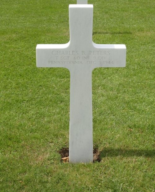 T/Sgt Charles B. Peters worked on a farm before he enlisted in Wilkes Barre, Pennsylvania on 24 April 1941.Source of information: Peter Schouteten, Carla Mans, www.abmc.gov, www.wwiimemorial.com, www.archives.gov - WWII Enlistment Record, www.ancestry.com - Headstone and Interment Record / U.S. WWII Draft Cards Young Men / 1920/1940 Census, http://9thinfantrydivision.net