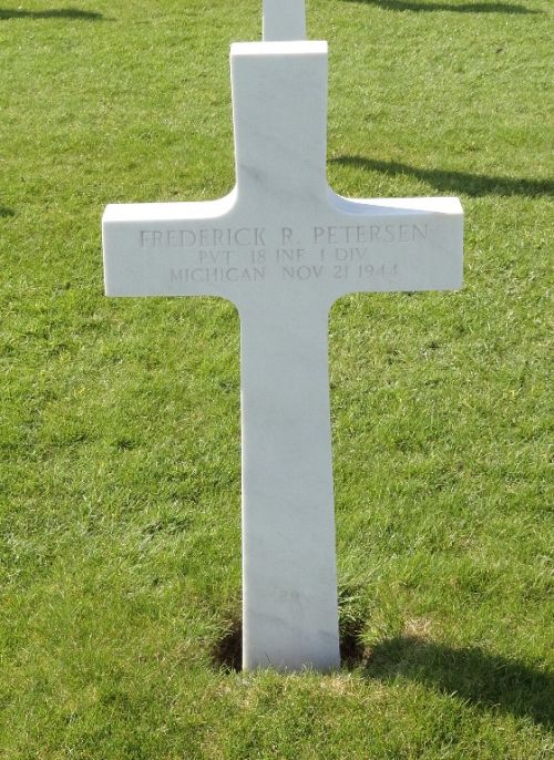 Pvt Frederick R. Petersen worked on a farm before he enlisted in Detroit, Michigan on 25 February 1944.He was following his older brother, Clarence, who had enlisted in 1941, fought on the Island of Corregidor and survived the war as a prisoner for 36 months.