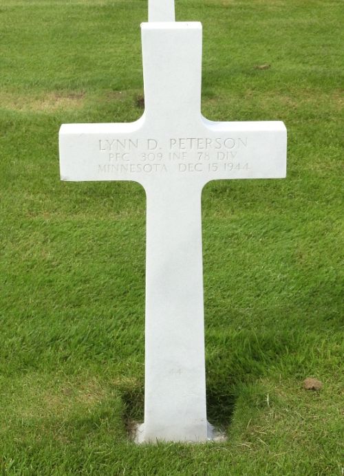 Pfc Lynn D. Peterson enlisted at Fort Snelling, Minnesota on 28 January 1944.He attended high school for 4 years and worked on a farm before he enlisted.