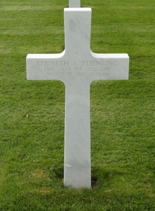 Pvt Kenneth A. Pliemling was a laboratory technician and assistant before he enlisted in Jefferson Barracks, Missouri on 3 October 1942.He was first buried at the Temporary American Military Cemetery of Foy, Belgium.