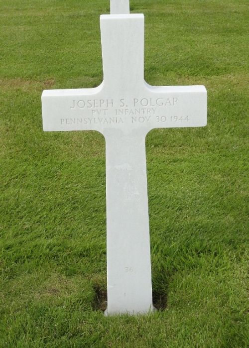 Pvt Joseph S. Polgar was a filling station attendant before he enlisted in New Cumberland, Pennsylvania on 1 May 1944.Source of information: Leo Minne, www.abmc.gov, www.archives.gov - WWII Enlistment Record, www.ancestry.com - 1940 Census / Headstone and Interment Record / Social Security Death Index