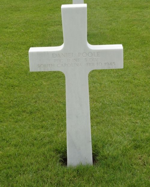 Pfc Daniel Poole worked on a farm before he enlisted at Fort Jackson Columbia, South Carolina on 15 January 1941.He was first buried at the Temporary American Military Cemetery of Foy, Belgium.
