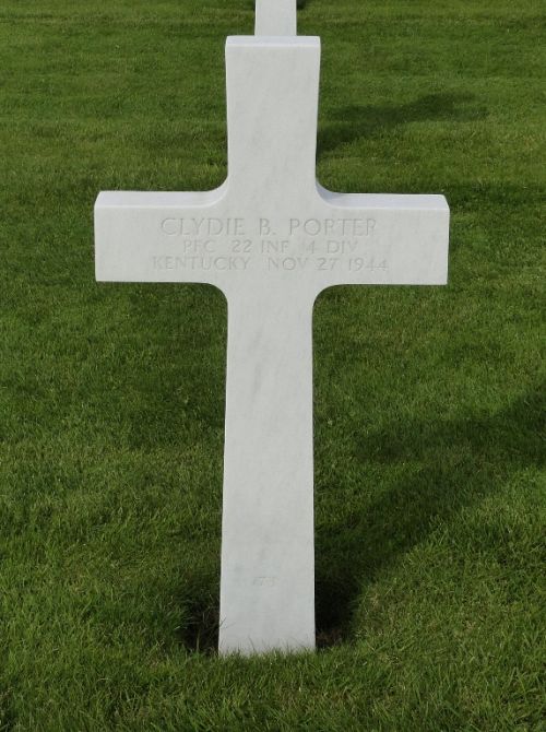 Pfc Clydie B. Porter worked on a farm.He enlisted at Fort Oglethorpe, Georgia on 24 July 1942. He was serving overseas for ten months and was wounded in action in 10 June 1944 for which he was awarded the Purple Heart Medal for the first time.