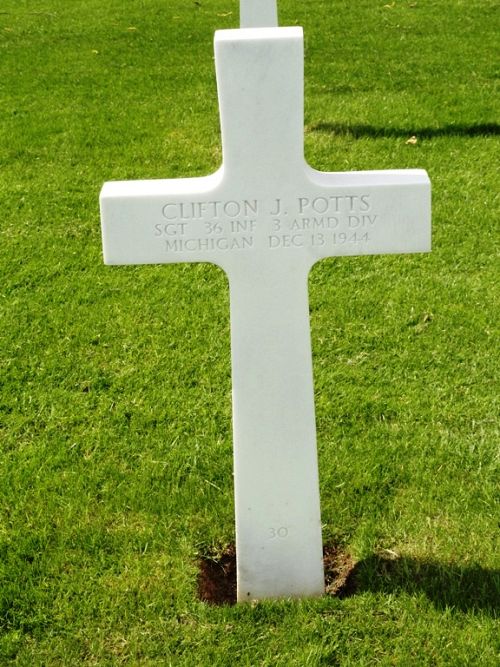 Sgt Clifton J. Potts was graduated from high school in 1933 before he enlisted in Detroit, Michigan on 16 June 1941.He was employed in the office of the Packard Car Motor Company. He received training at Camp Polk, Louisiana and camps in Virginia and Pennsylvania before going overseas in October, 1943. He had been in England, Belgium and Germany.