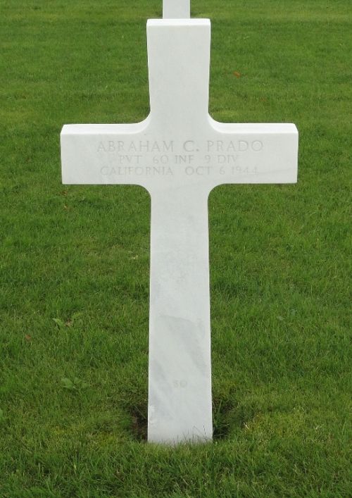 Pvt Abraham C. Prado enlisted at Fort MacArthur, California on 22 February 1944.Source of information: Peter Schouteten, Carla Mans, www.abmc.gov, www.wwiimemorial.com, www.archives.gov - WWII Enlistment Record, www.ancestry.com - Headstone and Interment Record / U.S. WWII Draft Cards Young Men / 1940 Census, http://9thinfantrydivision.net