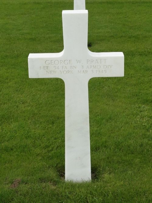 1st Lt George W. Pratt was first buried at Temporary American Military Cemetery Henri-Chapelle, Belgium Block ZZZ, Row 2, Grave 36.