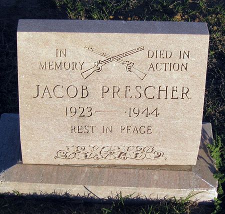 Pfc Jacob Prescher worked on a farm before he enlisted at Fort Sam Houston, Texas on 10 July 1941.His father was born in Bohemia.