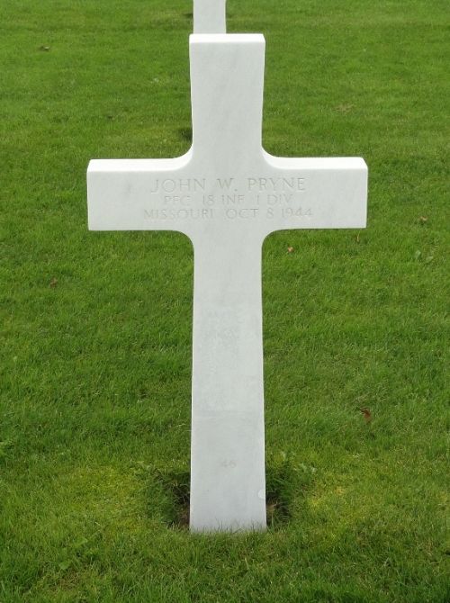 Pfc John W. Pryne was first buried at Block H, Row 1, Grave 11.Source of information: Raf Dyckmans, Carla Mans, www.abmc.gov, www.wwiimemorial.com, www.ancestry.com - 1930 Census / Headstone and Interment Record