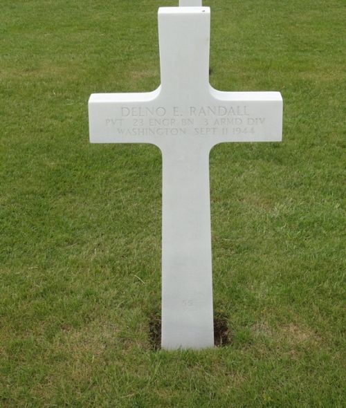 Pvt Delno E. Randall was first buried at the Temporary American Military Cemetery of Fosse, Belgium.Source of information: Peter Schouteten, Carla Mans, www.abmc.gov, www.wwiimemorial.com, www.ancestry.com - U.S., Headstone and Interment Records for U.S. Military Cemeteries on Foreign Soil / 1940 Census