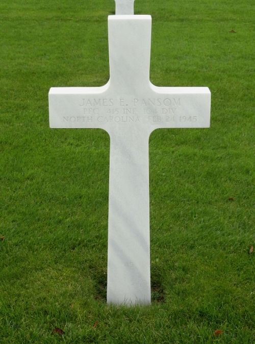 Pfc James E. Ransom worked on a farm before he enlisted at Fort Bragg, North Carolina on 18 November 1942.Source of information: Raf Dyckmans, www.abmc.gov, www.wwiimemorial.com, www.archives.gov - WWII Enlistment Record, www.ancestry.com - L. Booth Family Tree, U.S., Headstone and Interment Records for U.S. Military Cemeteries on Foreign Soil, 1942-1949