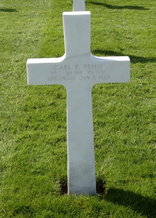 Pfc Carl F. Rehm was first buried at Block QQQ, Row 1, Grave 12.Source of information: Peter Schouteten, Richard Blunk, Carla Mans, www.abmc.gov, www.wwiimemorial.com, www.ancestry.com - Headstone and Interment Record / U.S. WWII Draft Cards Young Men / 1940 Census, www.findagrave.com - Shane O