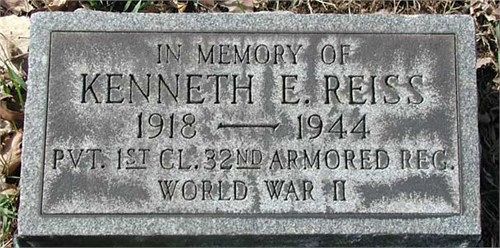 Pfc Kenneth E. Reiss enlisted at Fort George G. Meade, Maryland on 17 February 1942.He attended high school for 2 years and worked on mechanical treatment of metals before he enlisted.