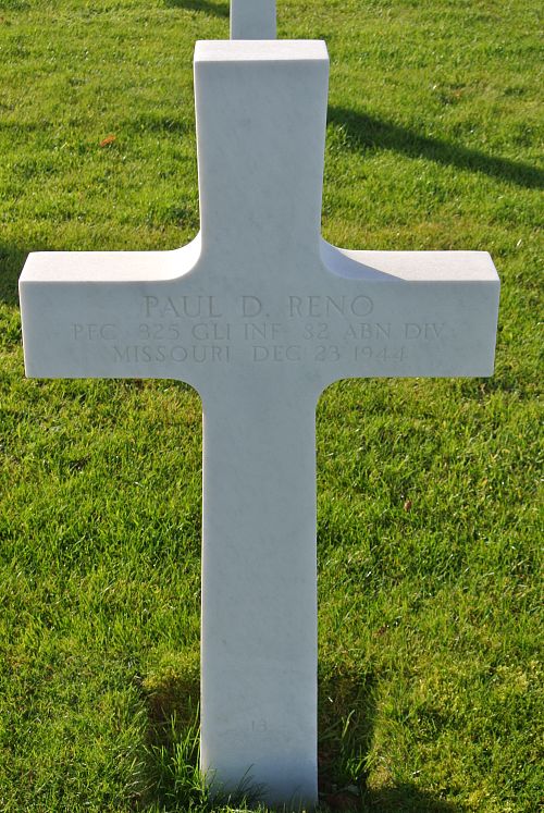 Source of information: Peter Schouteten, Kyle Reno, www.abmc.gov, www.wwiimemorial.com - Elizabeth Lou Alexander Reno, www.findagrave.com - Kathy, http://www.ww2-airborne.us/units/325/325_honor_pr.html, www.ancestry.com - U.S., Headstone and Interment Records for U.S. Military Cemeteries on Foreign Soil