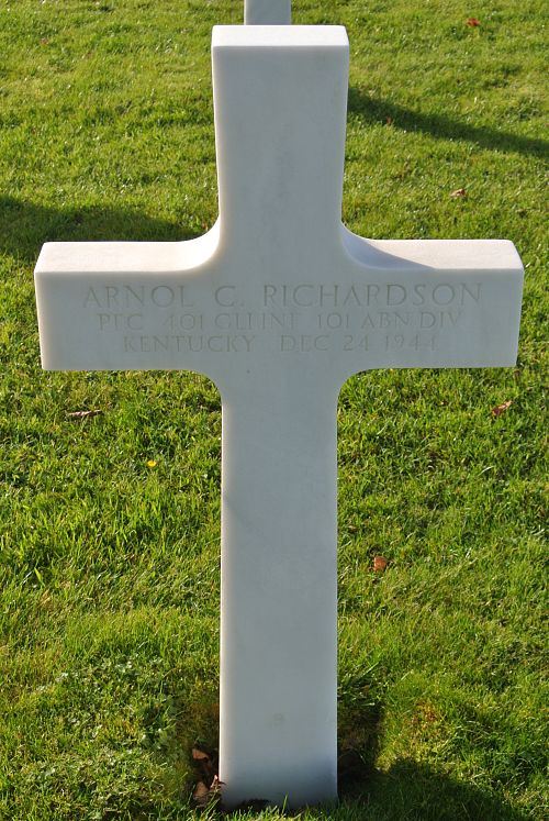 Pfc Arnol C. Richardson enlisted at Fort Benjamin Harrison, Indiana on 16 March 1942.Source of information: Peter Schouteten, www.abmc.gov, www.findagrave.com, www.wwiimemorial.com, www.archives.gov - WWII Enlistment Record, http://www.ww2-airborne.us/units/401/401_honor_kz.html, www.ancestry.com - U.S., Headstone and Interment Records for U.S. Military Cemeteries on Foreign Soil