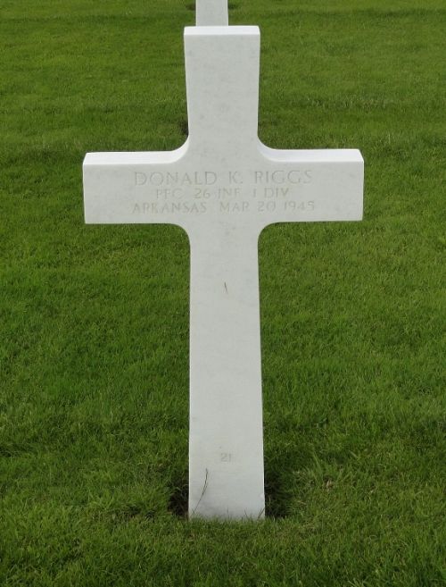 Pfc Donald K. Riggs was first buried at Temporary American Military Cemetery Henri-Chapelle Block K4, Row 2, Grave 40.
