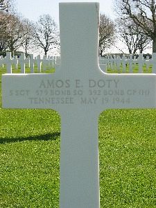 A returning eyewitness account stated that this aircraft had come under attack by a single enemy fighter that attacked the bomber, which allegedly exploded in the air as a result of. The eyewitness stated that 6 parachutes were seen immediately thereafter. The Missing Aircrew Report does not further include any eyewitness accounta.German forces were able to recover the bodies of the crewmembers, but were only the identify four of them, including Amos Doty. He and the other crewmembers (were initially buried in the cemetery in the village of Veltheim, Germany.