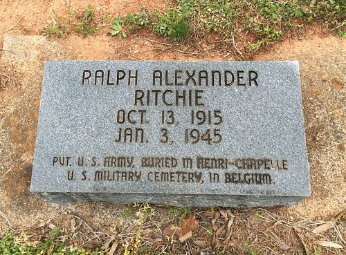 Pvt Ralph A. Ritchie enlisted at Fort Bragg, North Carolina on 11 April 1944.His initial burial took place on Fosse Cemetery, Namur, Belgium.