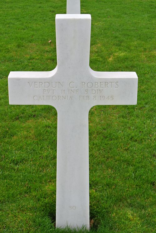 Pvt Verdun C. Roberts enlisted at Fort MacArthur San Pedro, California on 3 June 1944.He attended high school for 3 years and worked in building of aircraft before he enlisted.