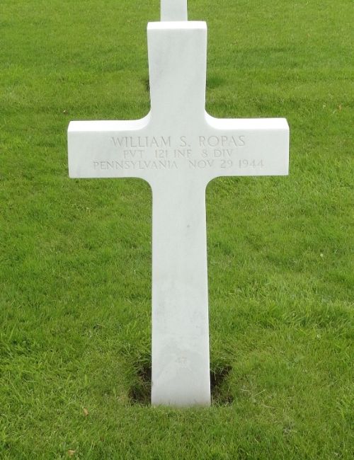 Pvt William S. Ropas was a metal worker before he enlisted in Pittsburgh, Pennsylvania on 21 December 1942.His parents were born in Croatia.