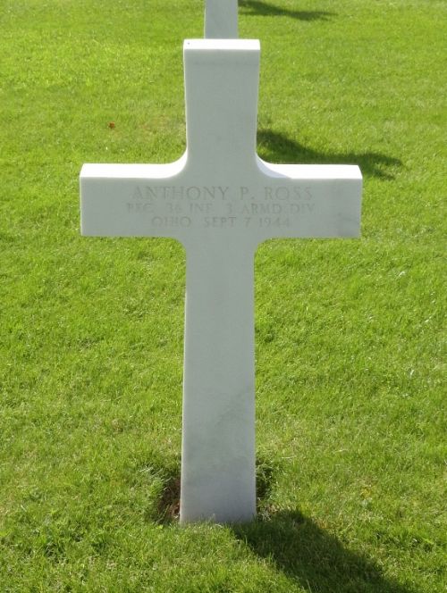 Pfc Anthony P. Ross was a mechanic before he volunteered for the US Army in Pittsburgh, Pennsylvania on 11 March 1942.He was first buried at the Temporary American Military Cemetery of Fosse, Belgium.