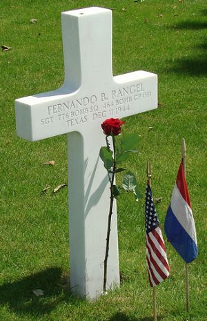 Sgt Fernando B. Rangel enlisted at Fort Sam, Houston, Texas on 26 March 1943.Statement from Sgt Norman W. McCoulskey, Tail gunner, 776th Bomb Sq, 464th Bomb Gp.: