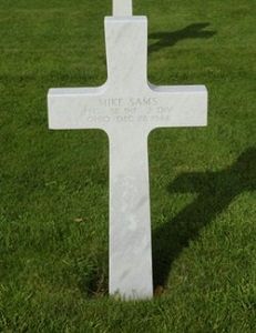 Pfc Mike Sams enlisted in Cleveland, Ohio on 15 March 1941. He was a bellman before he enlisted.Source of information: Raf Dyckmans, Carla Mans, www.wwiimemorial.com, www.archives.gov - WWII Enlistment Record, www.ancestry.com - U.S. WWII Draft Cards Young Men