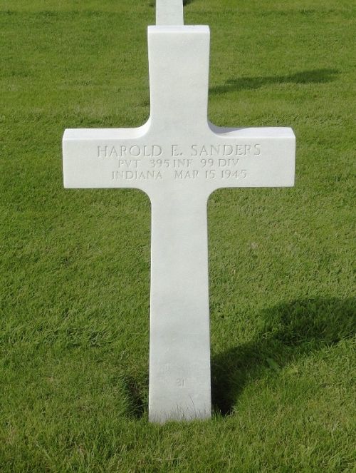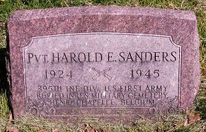 Pvt Harold E. Sanders worked on a farm before he enlisted in Indianapolis, Indiana on 29 July 1944.Pvt Harold E. Sanders is remembered at the Ladoga Cemetery in Ladoga, Montgomery County, Indiana.